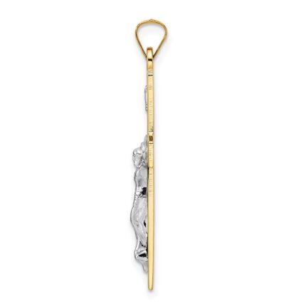14k with White Rhodium Polished INRI Crucifix Cross Pendant