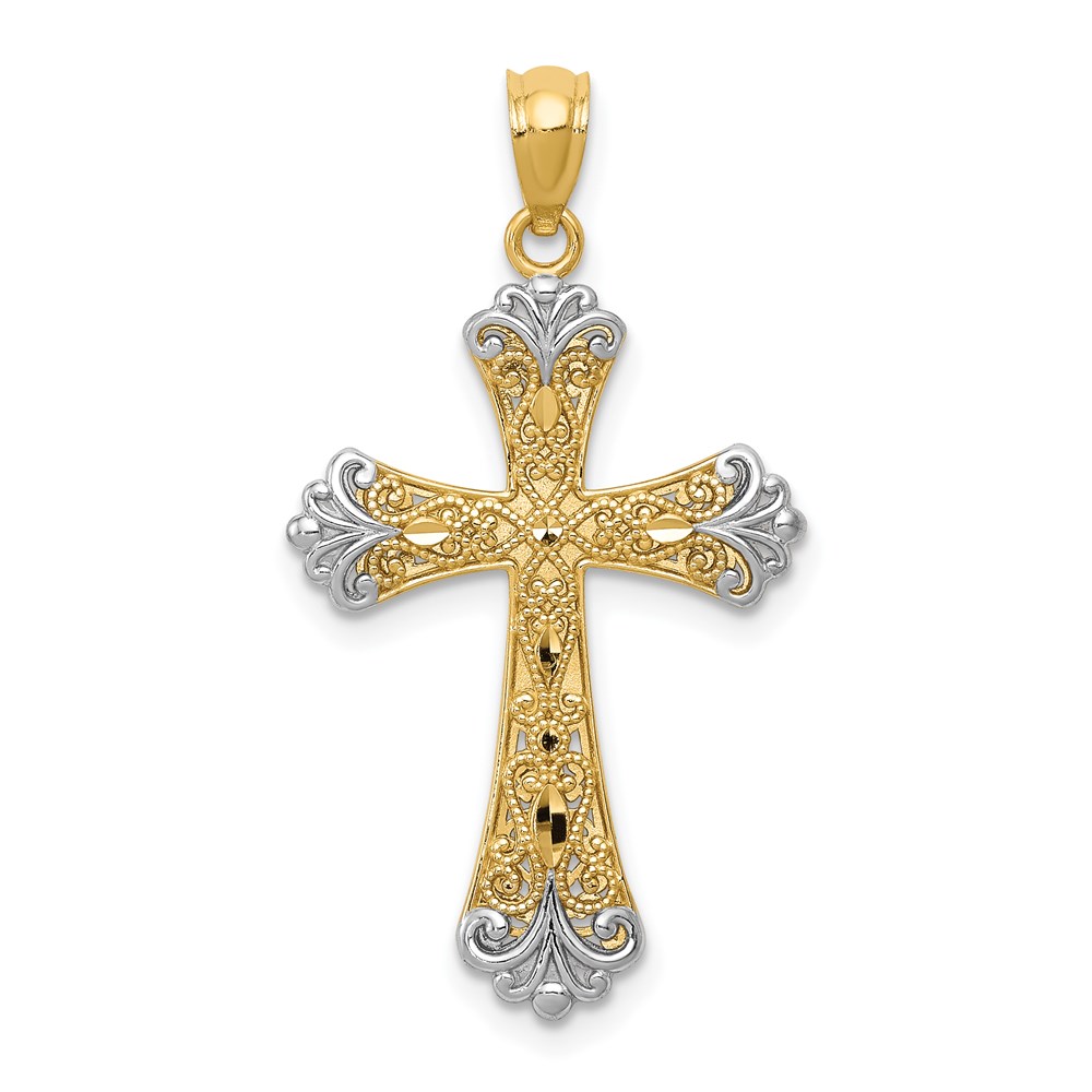 14K with White Rhodium Reversible with GOD LOVE Cross Pendant