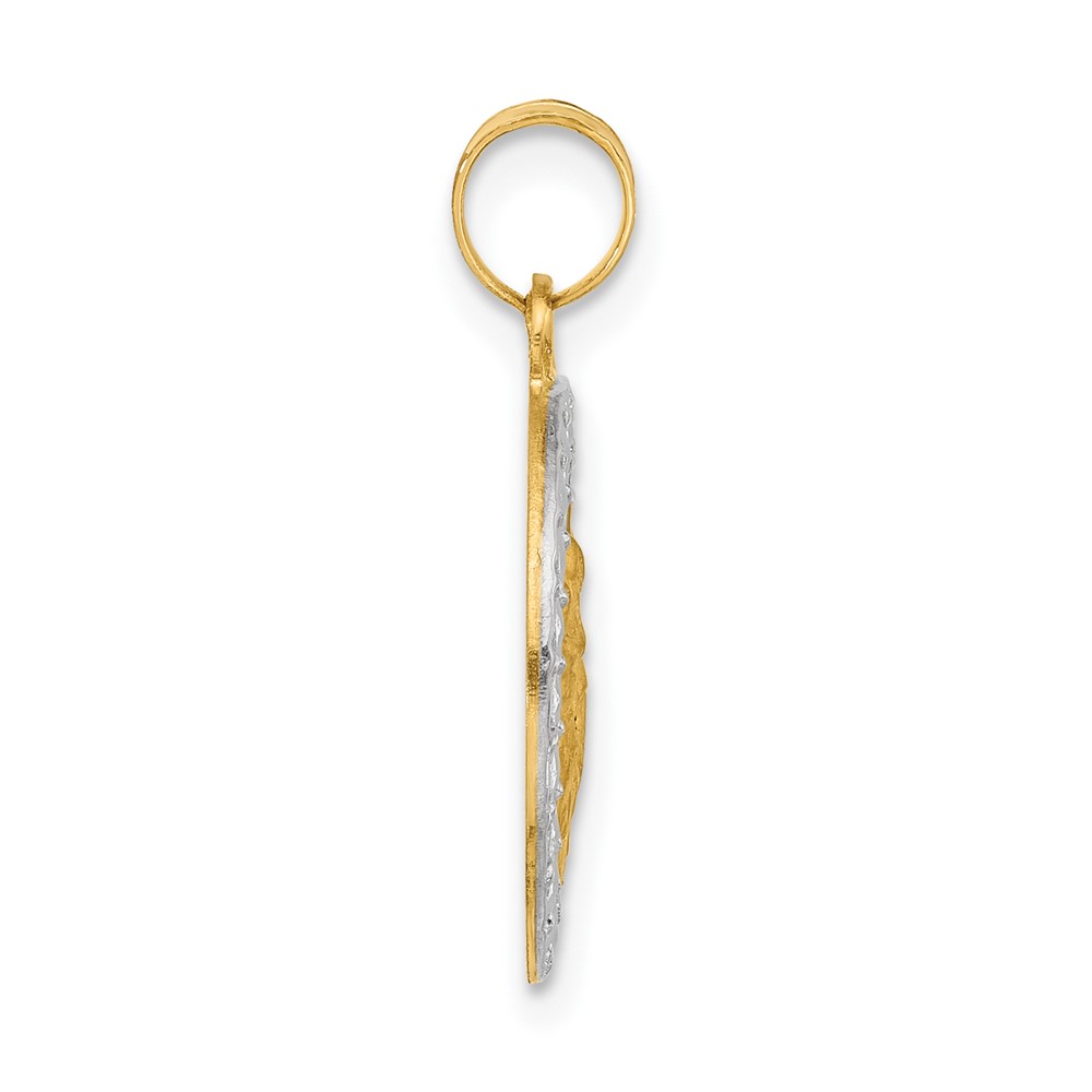 14K with White Rhodium Satin and Polished Hollow St. Anthony Medal Round Pendant