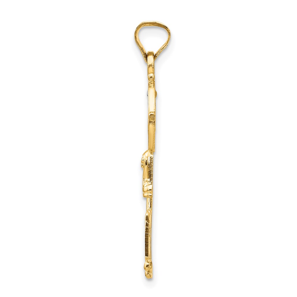 14k with White Rhodium Solid St. Benedict 2-Sided Cross Key Pendant