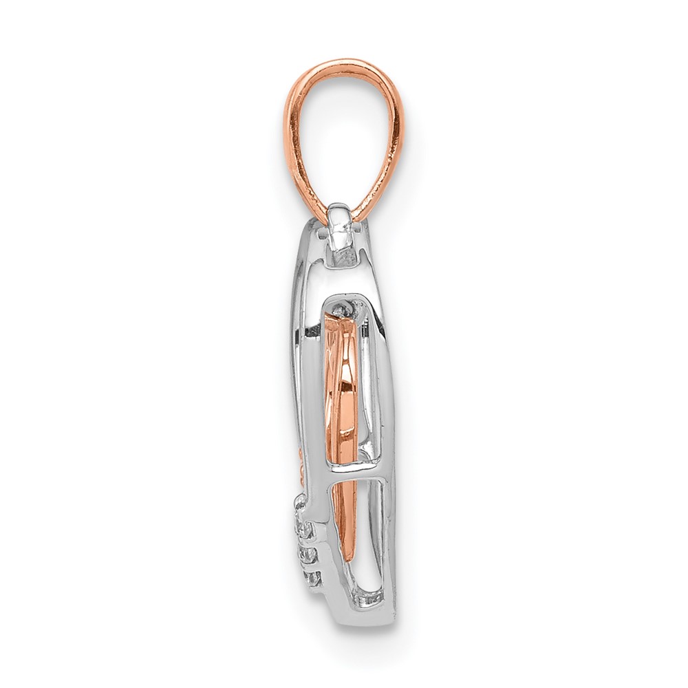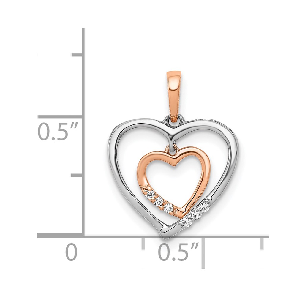 14kt White and Rose Gold Dangling Heart in Diamond Heart Pendant