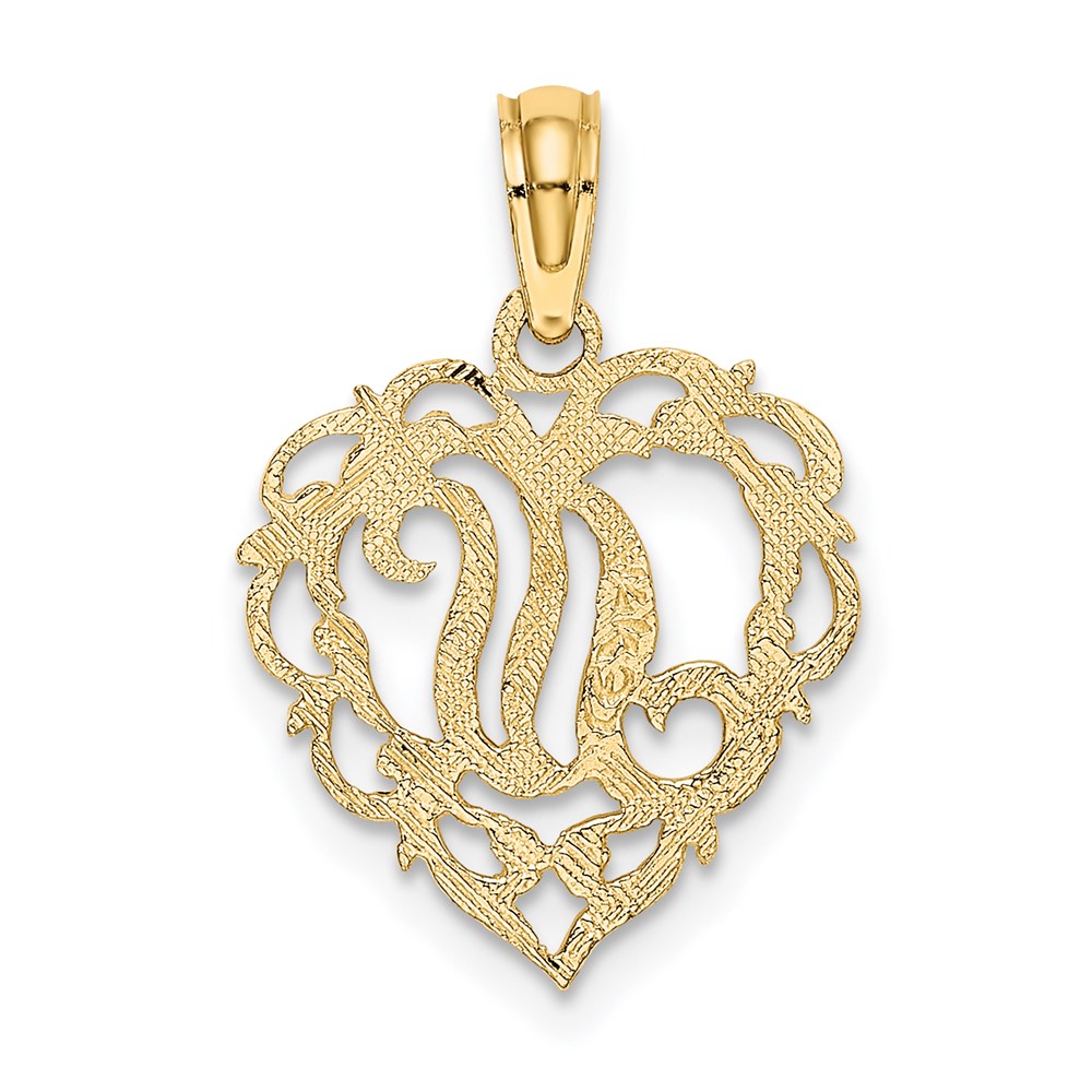 14KY Heart Script Letter N Initial Charm