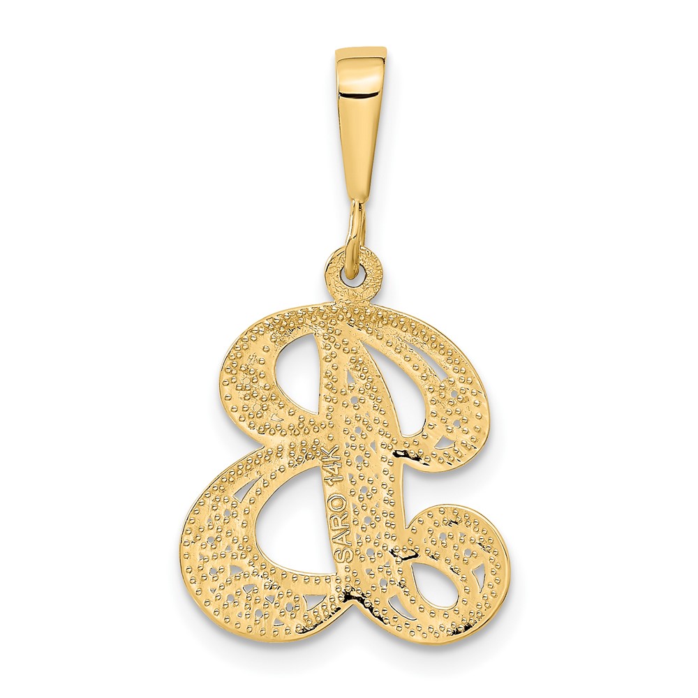 14KY Polished Script Filigree Letter B Initial Pendant