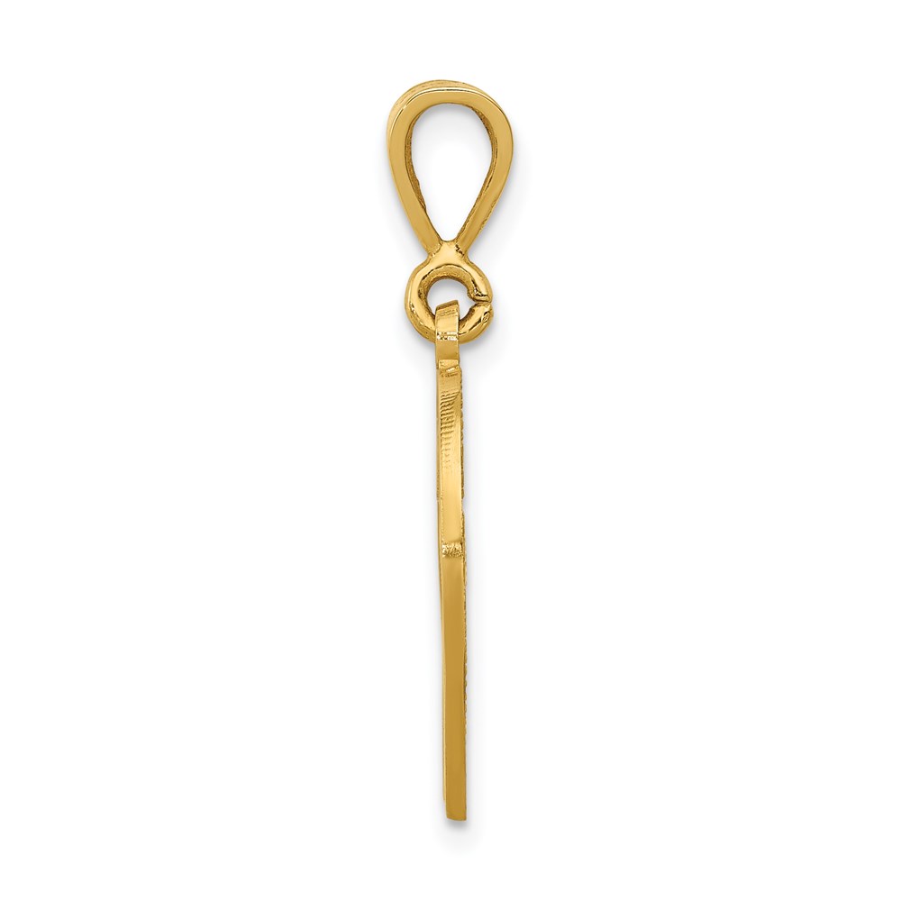 14KY Polished Script Filigree Letter V Initial Pendant