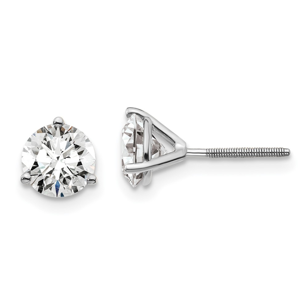 18k White Gold 1 1/2 carat Lab Grown Diamond VS+ F+ Round Complete Three Prong Screwback Stud Earrings