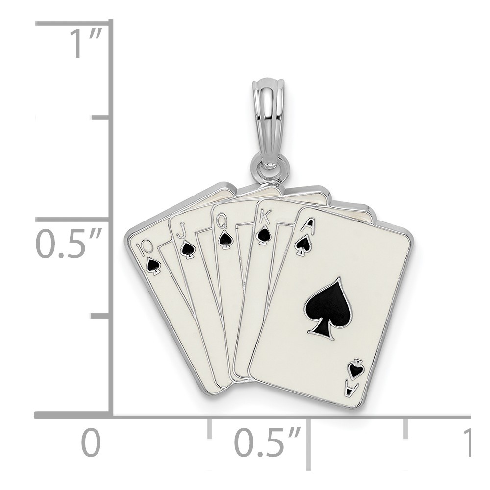 De-Ani Sterling Silver Rhodium-Plated Enameled Cards Royal Flush Pendant