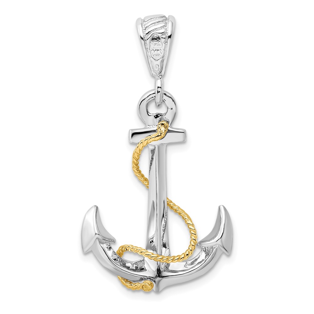 De-Ani Sterling Silver Rhodium-Plated Polished 3D Anchor with 14k Rope Pendant