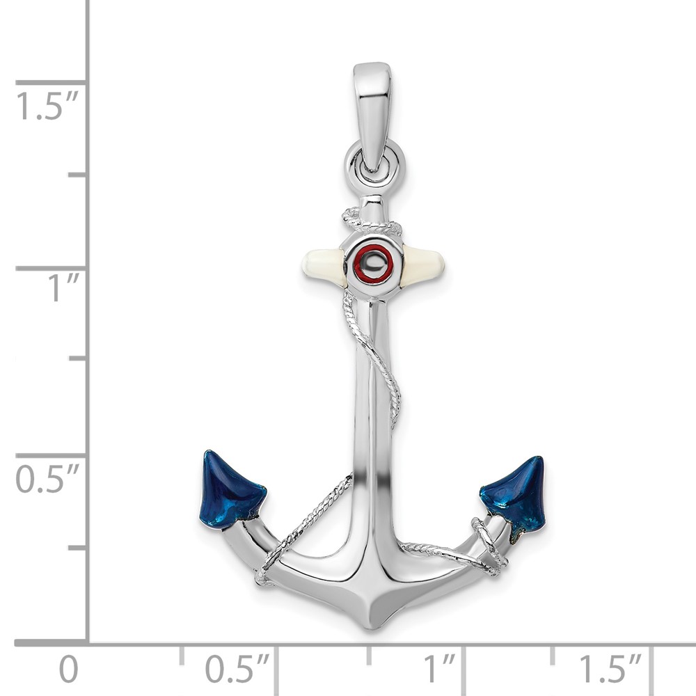 De-Ani Sterling Silver Rhodium-Plated Polished 3D Enameled Anchor Pendant