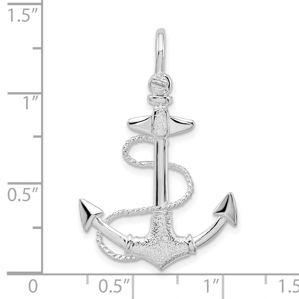 De-Ani Sterling Silver Rhodium-Plated Polished and Textured 3D Anchor with Rope Pendant