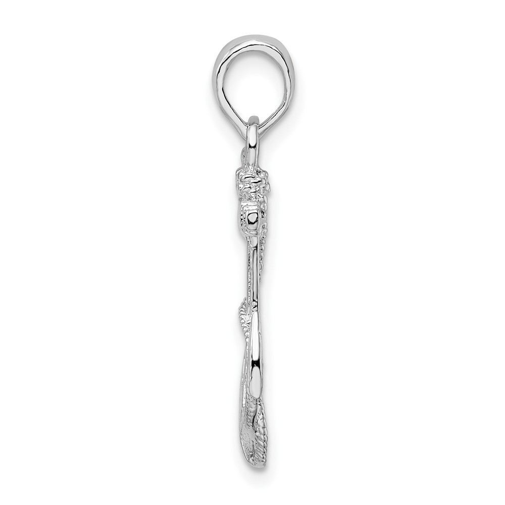 De-Ani Sterling Silver Rhodium-Plated Polished and Textured Anchor with Rope Pendant