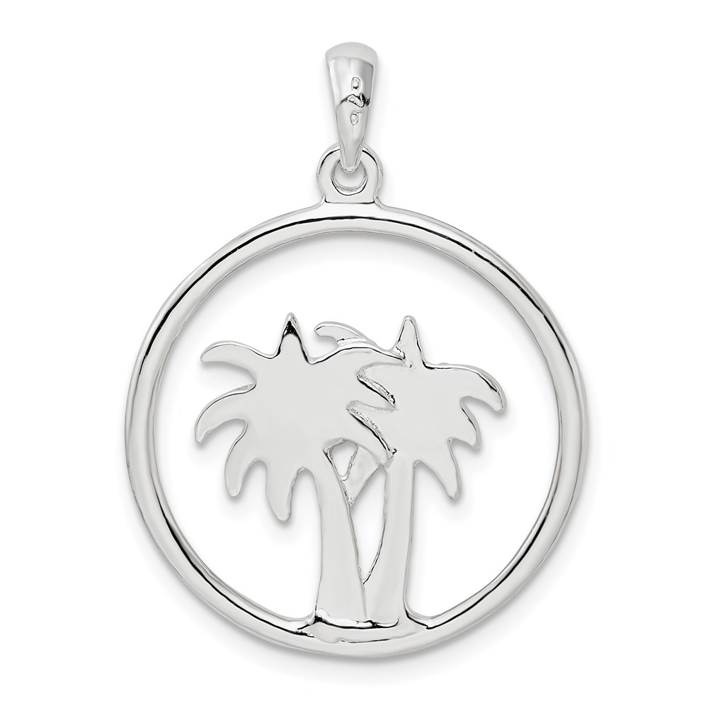 De-Ani Sterling Silver Rhodium-Plated Polished Double Palm Tree Circle Pendant