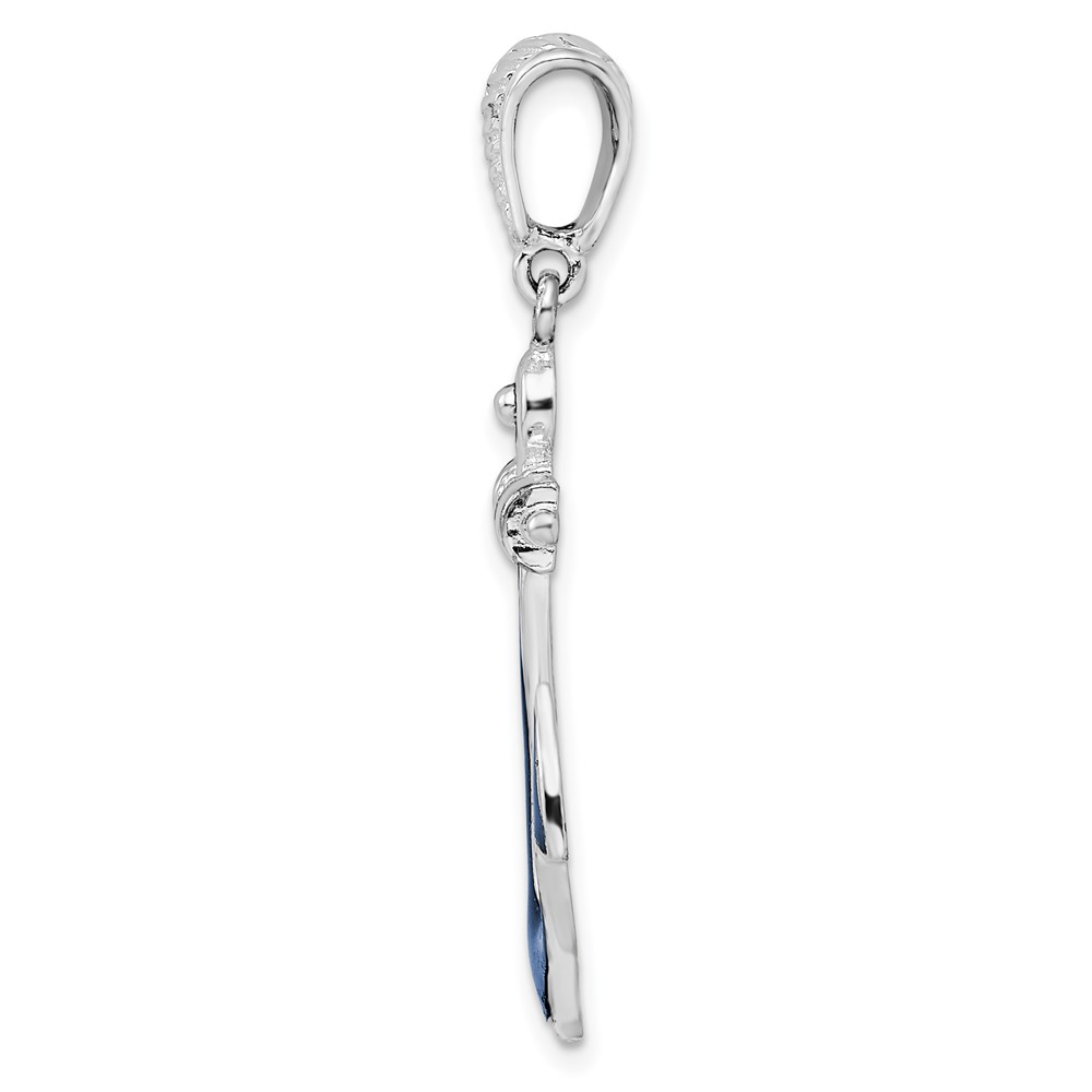 De-Ani Sterling Silver Rhodium-Plated Polished Enameled Anchor Pendant