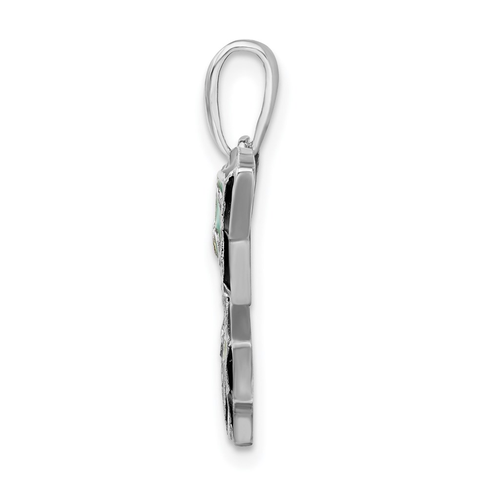 De-Ani Sterling Silver Rhodium-Plated Polished Enameled Aqua Butterfly Pendant
