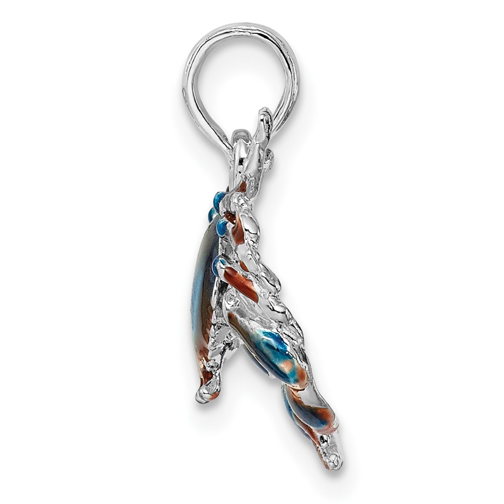 De-Ani Sterling Silver Rhodium-Plated Polished Enameled Blue Stone Crab Pendant