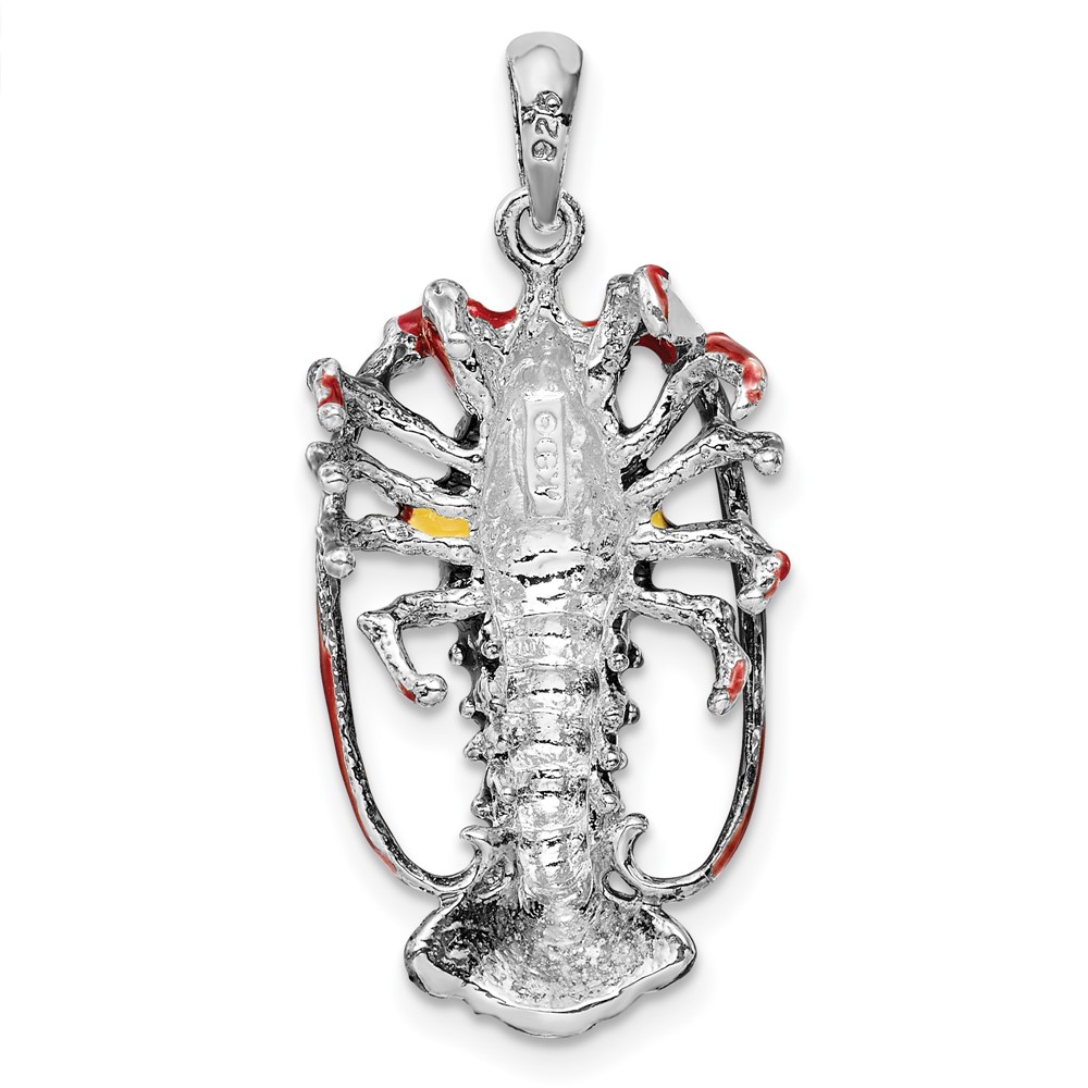 De-Ani Sterling Silver Rhodium-Plated Polished Enameled Florida Lobster Pendant