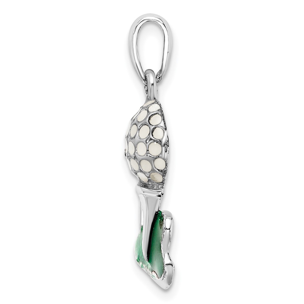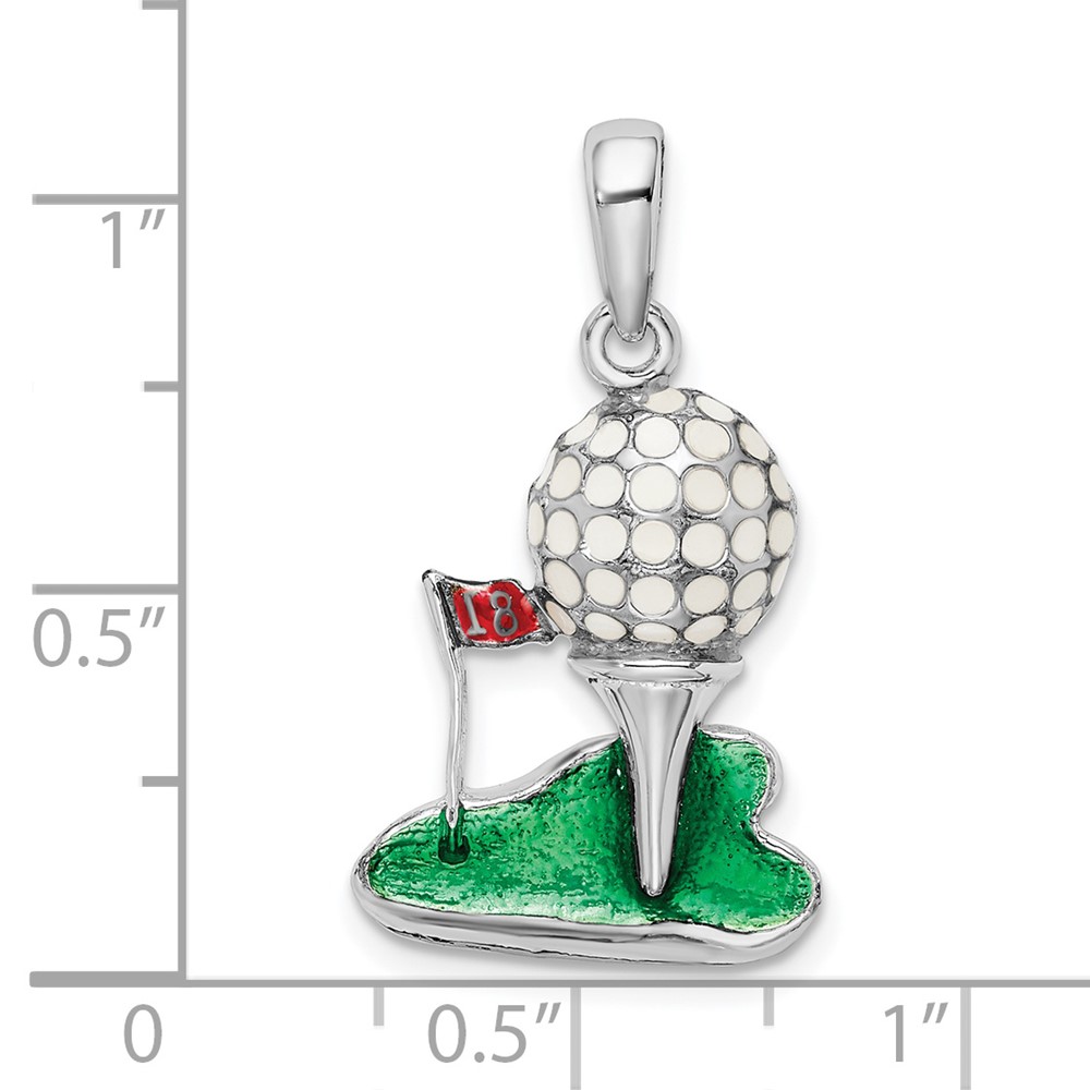 De-Ani Sterling Silver Rhodium-Plated Polished Enameled Golf Ball with Tee Pendant