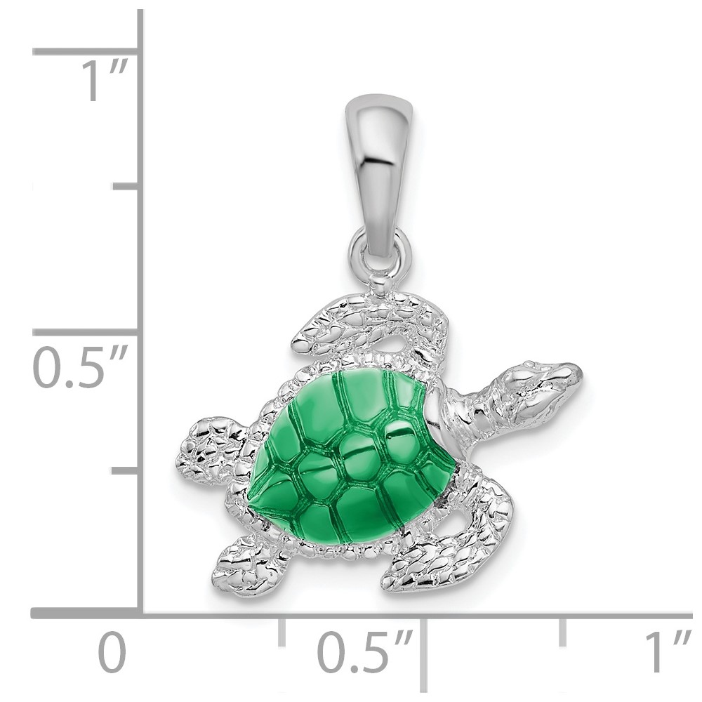De-Ani Sterling Silver Rhodium-Plated Polished Enameled Sea Turtle Pendant