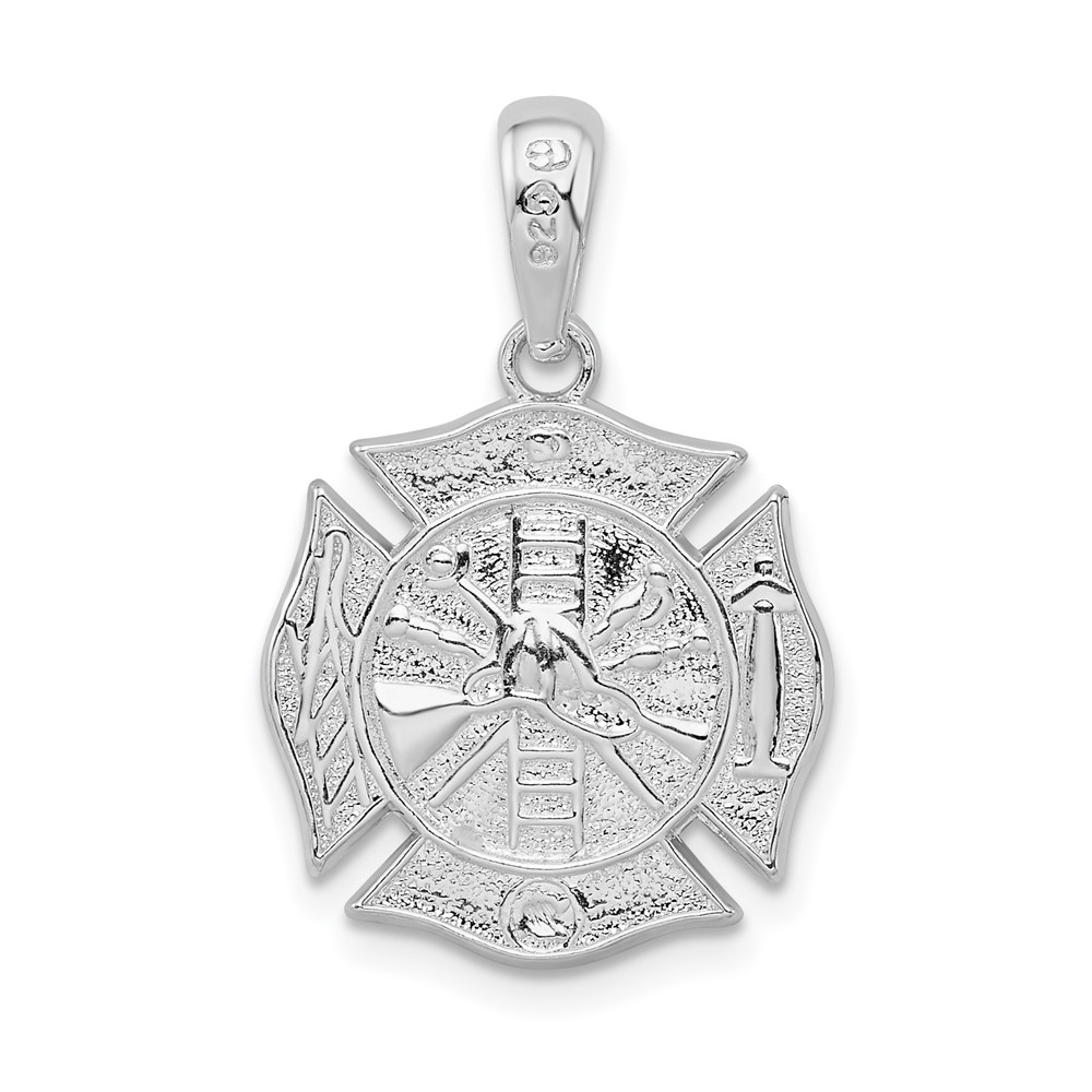 De-Ani Sterling Silver Rhodium-Plated Polished Reversible Fireman Medal Pendant