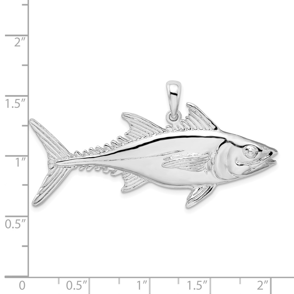De-Ani Sterling Silver Rhodium-Plated Polished Skipjack Tuna Fish Pendant