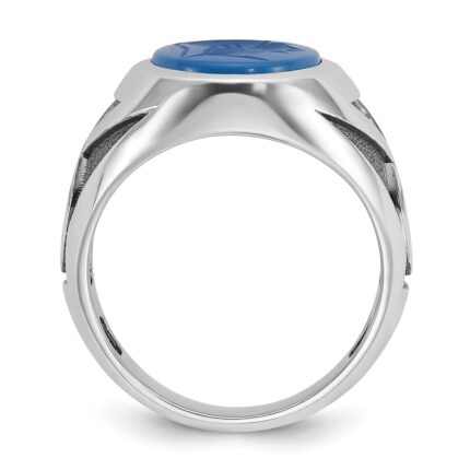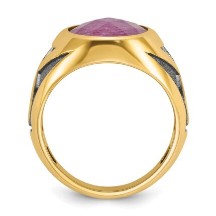 IBGoodman 10k Two-tone Men’s Polished and Grooved Lab Created Sapphire and 1/10 Carat A Quality Diamond Ring