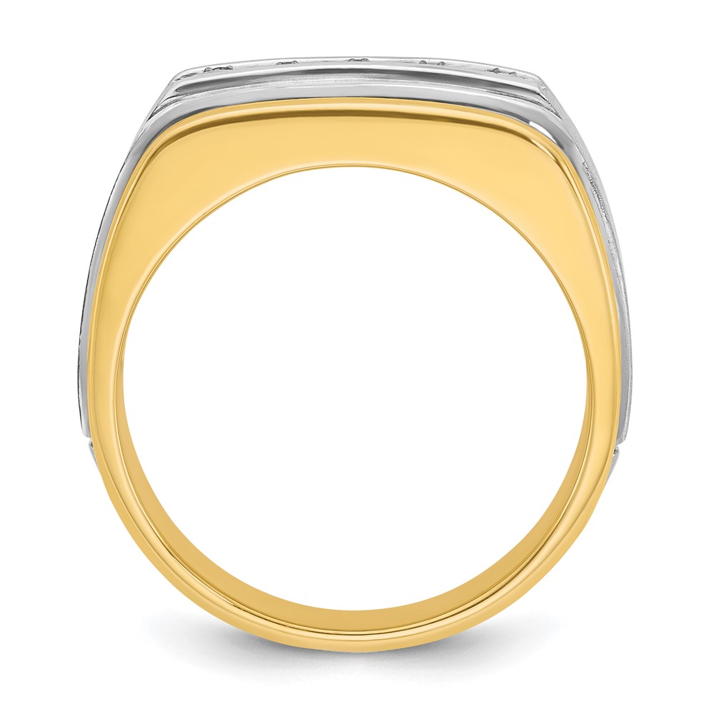 IBGoodman 10k Two-tone Men’s Polished Satin and Grooved 5-Stone 1/2 Carat A Quality Diamond Ring