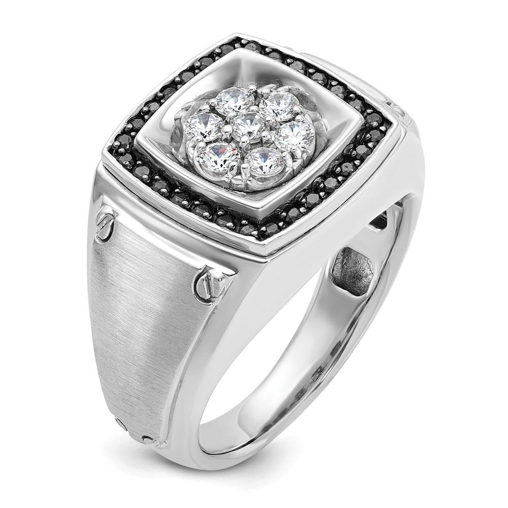 IBGoodman 10k White Gold Men’s Polished and Satin 3/4 Carat A Quality Black and White Diamond Halo Cluster Ring