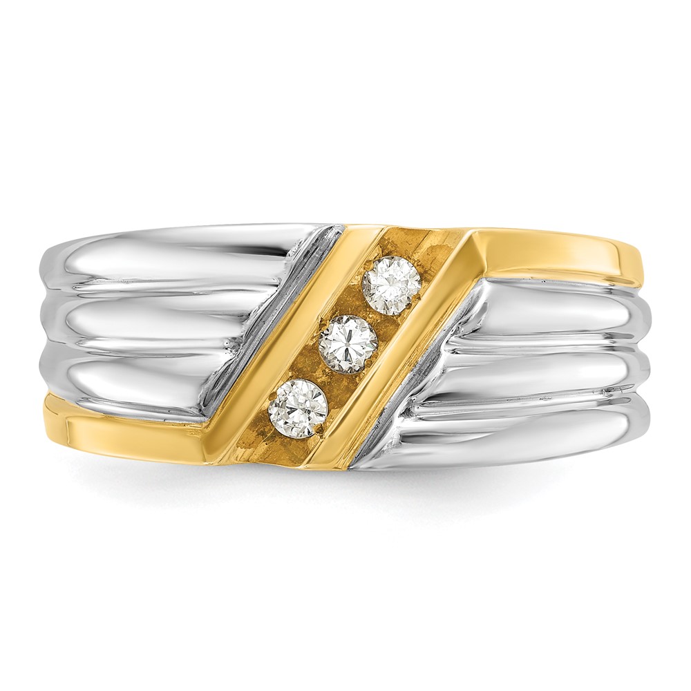 IBGoodman 14k Two-tone Men’s Polished and Grooved 3-Stone 1/6 Carat AA Quality Diamond Ring