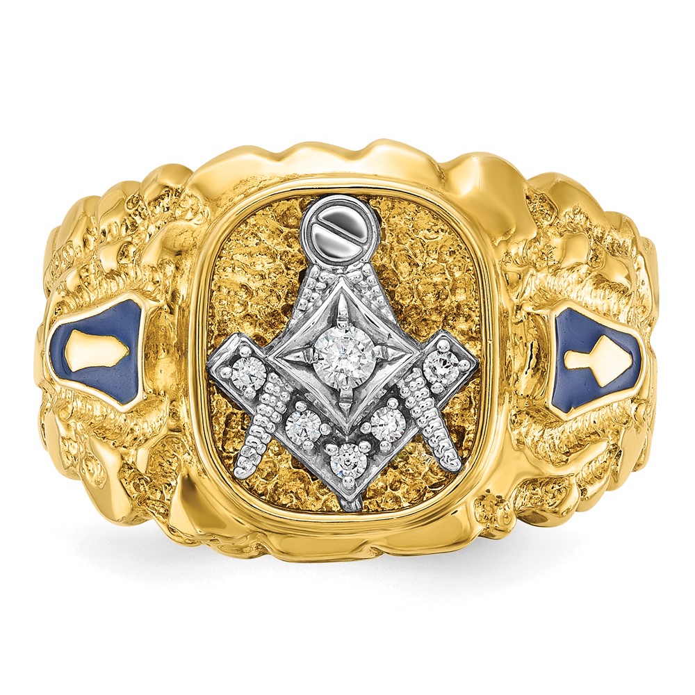 IBGoodman 14k Two-tone Men’s Polished and Nugget Textured Diamond Blue Lodge Master Masonic Ring