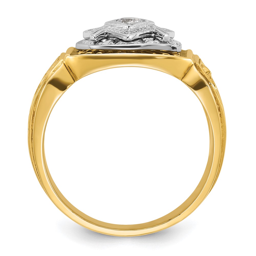 IBGoodman 14k Two-tone Men’s Polished and Textured with Blue and Black Enamel Diamond Blue Lodge Master Masonic Ring