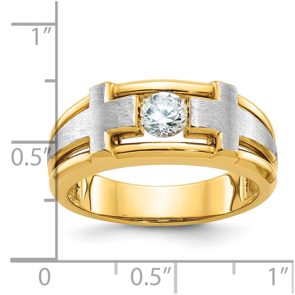 IBGoodman 14k Two-tone Men’s Polished Satin and Cut-Out 1/2 Carat AA Quality Diamond Cross Ring