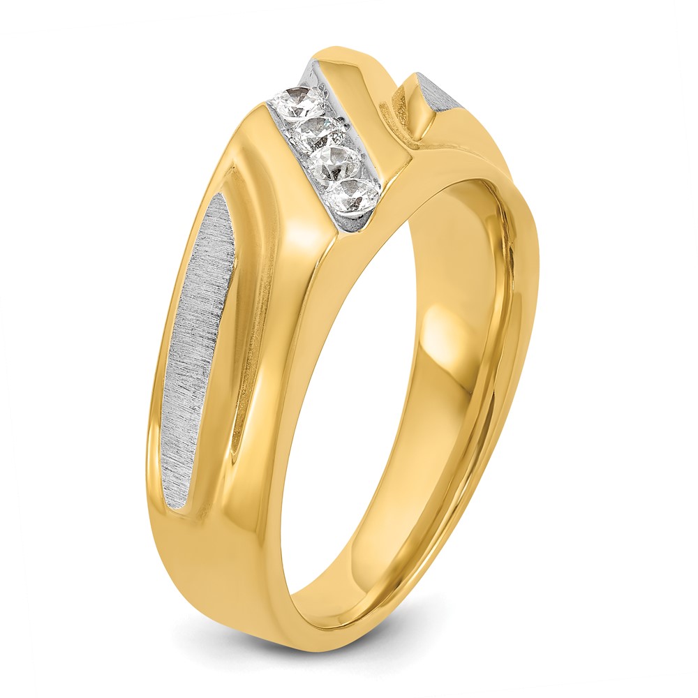 IBGoodman 14k Two-tone Men’s Polished Satin and Grooved 4-Stone Ring Mounting