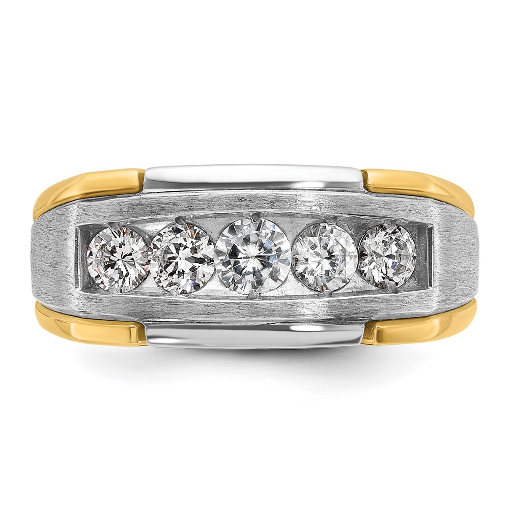 IBGoodman 14k Two-tone Men’s Polished Satin and Grooved 5-Stone 1 Carat AA Quality Diamond Ring