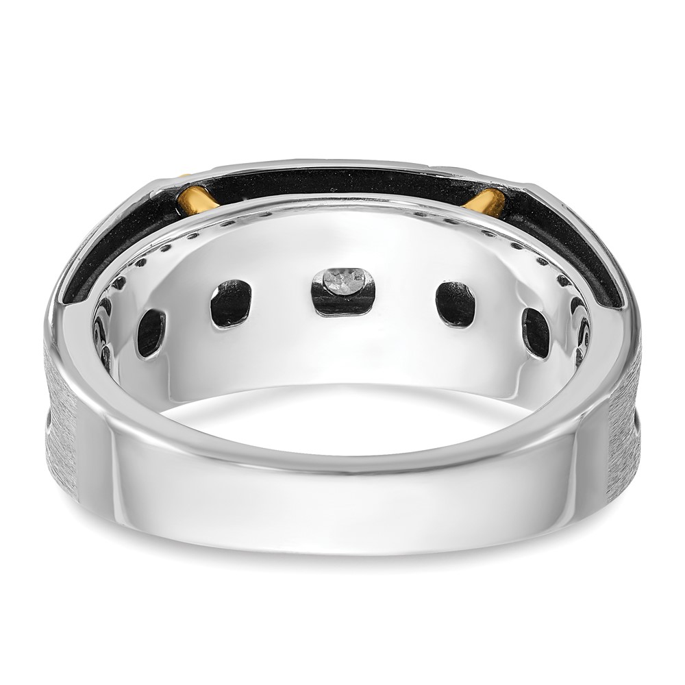 IBGoodman 14k Two-tone with Black Rhodium 1/2 carat Lab Grown Diamond VS/SI+ G+ Five Stone Complete Polished Satin and Grooved Men’s Ring