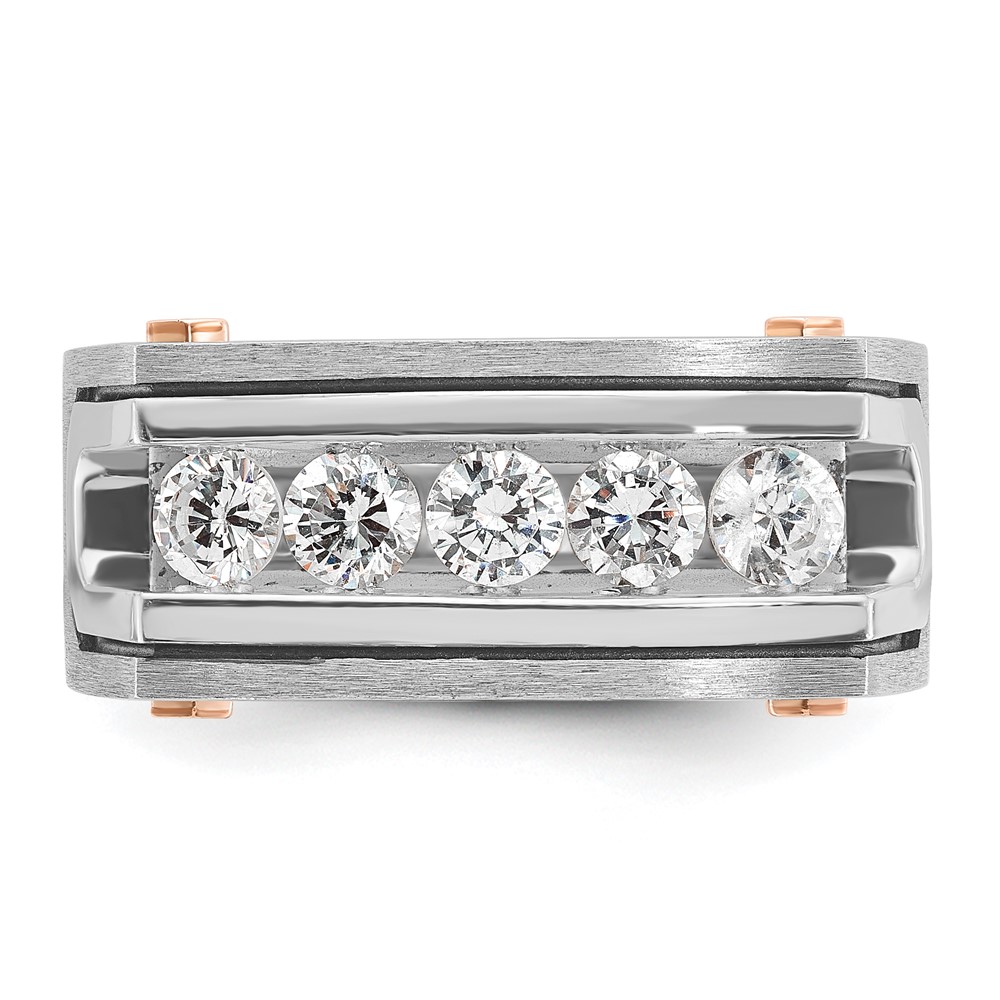 IBGoodman 14k White and Rose Gold Men’s Polished Satin and Grooved 5-Stone Ring Mounting