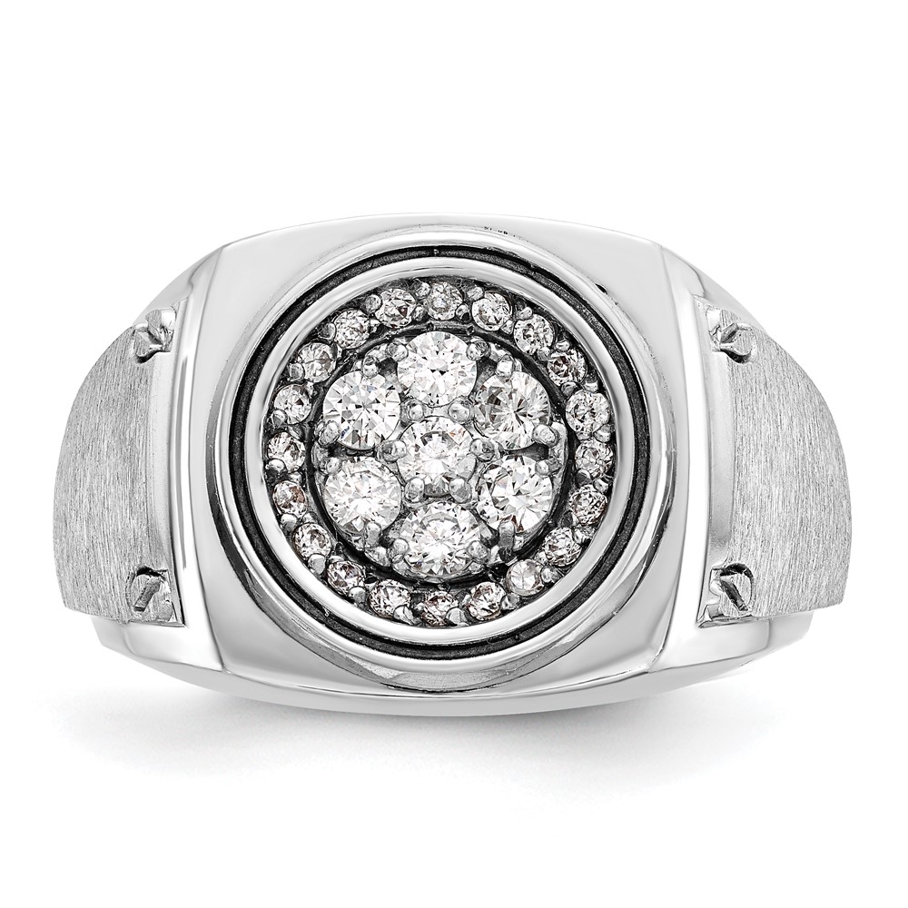 IBGoodman 14k White Gold Men’s Polished and Satin 3/4 Carat AA Quality Diamond Round Cluster Ring