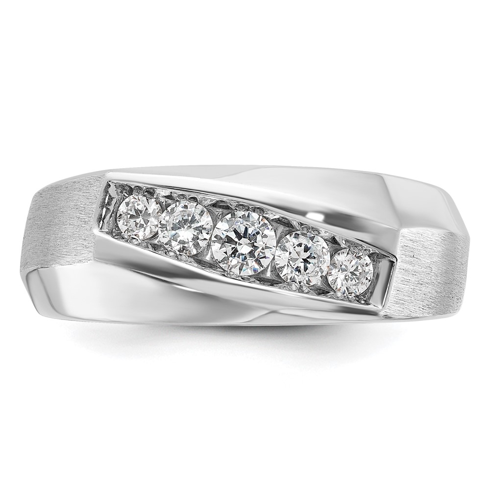 IBGoodman 14k White Gold Men’s Polished and Satin 5-Stone 1/2 Carat AA Quality Diamond Ring