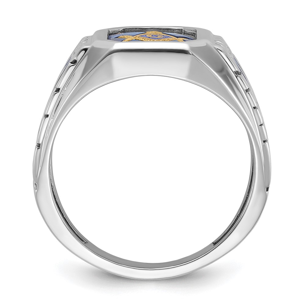 IBGoodman 14k White Gold Men’s Polished and Textured with Blue Enamel and Lab Created Sapphire Blue Lodge Master Masonic Ring