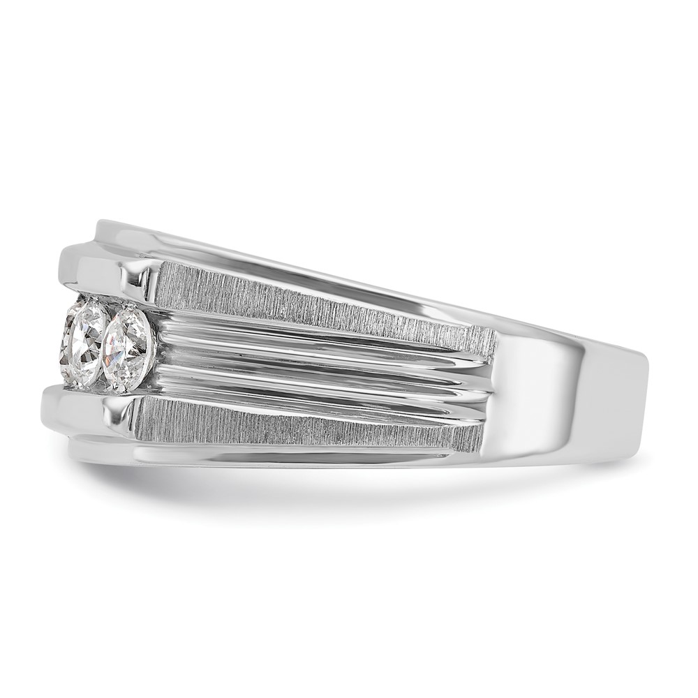 IBGoodman 14k White Gold Men’s Polished Brushed and Grooved 5-Stone 1 Carat AA Quality Diamond Ring