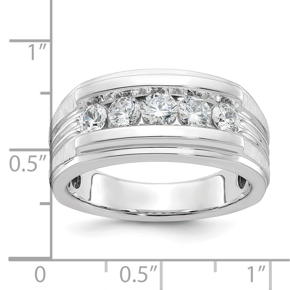 IBGoodman 14k White Gold Men’s Polished Brushed and Grooved 5-Stone Ring Mounting