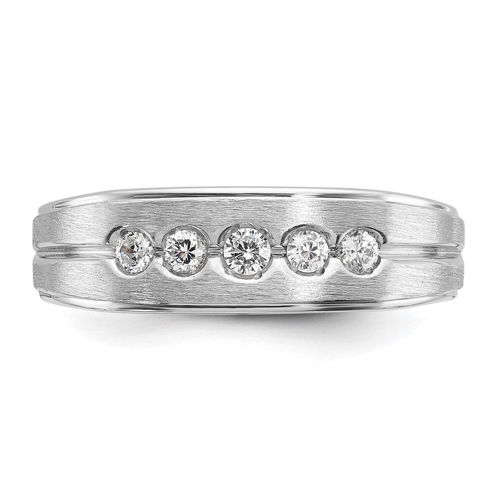 IBGoodman 14k White Gold Men’s Polished Satin and Grooved 1/4 Carat AA Quality Diamond 5-Stone Ring