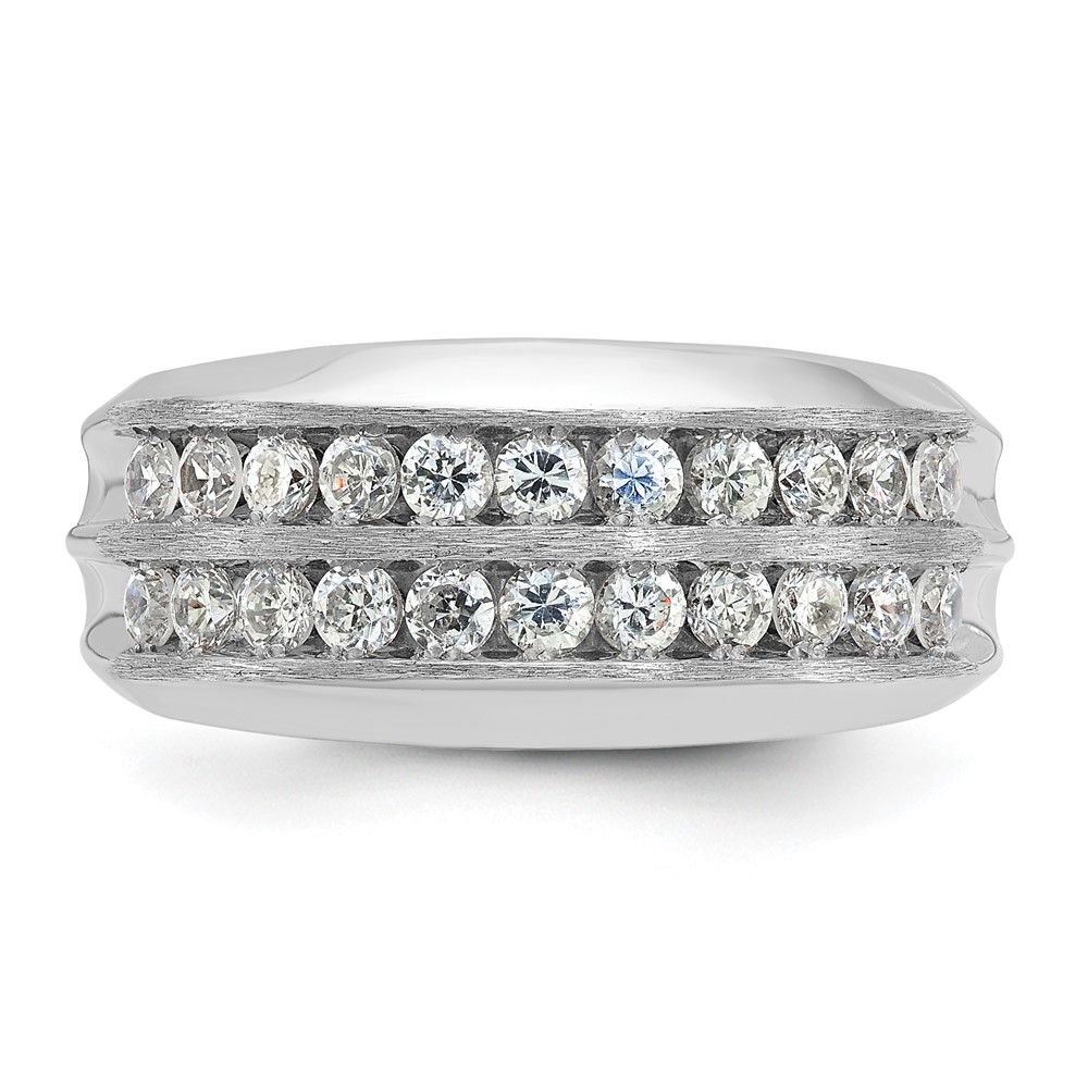 IBGoodman 14k White Gold Men’s Polished Satin and Grooved 2-Row 1 Carat AA Quality Diamond Ring