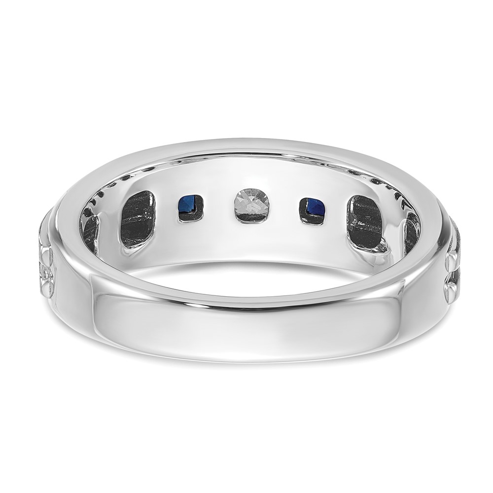 IBGoodman 14k White Gold Men’s Polished Satin and Grooved Square 1/6 Carat AA Quality Diamond and Lab Created Sapphire 3-Stone Ring