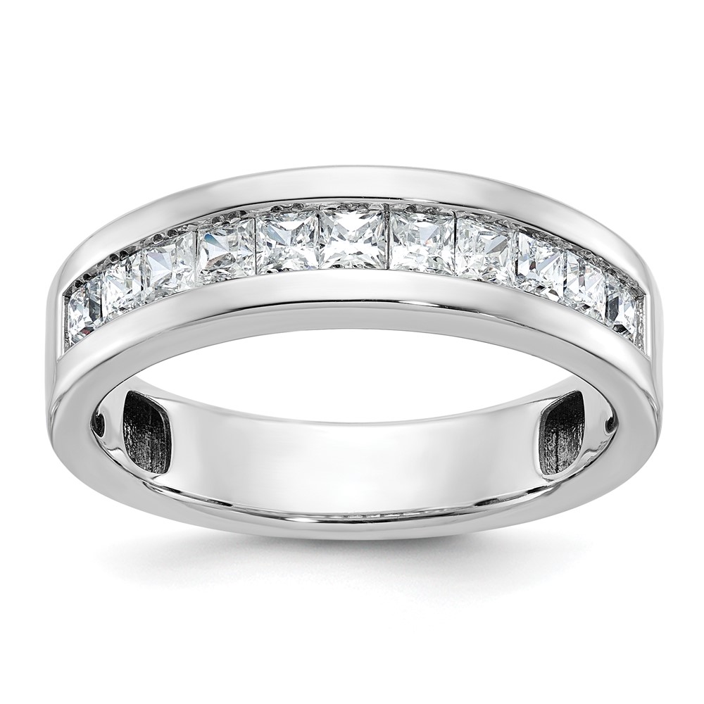 IBGoodman 14k White Gold Men’s Polished Square 11-Stone 1 Carat AA Quality Diamond Ring