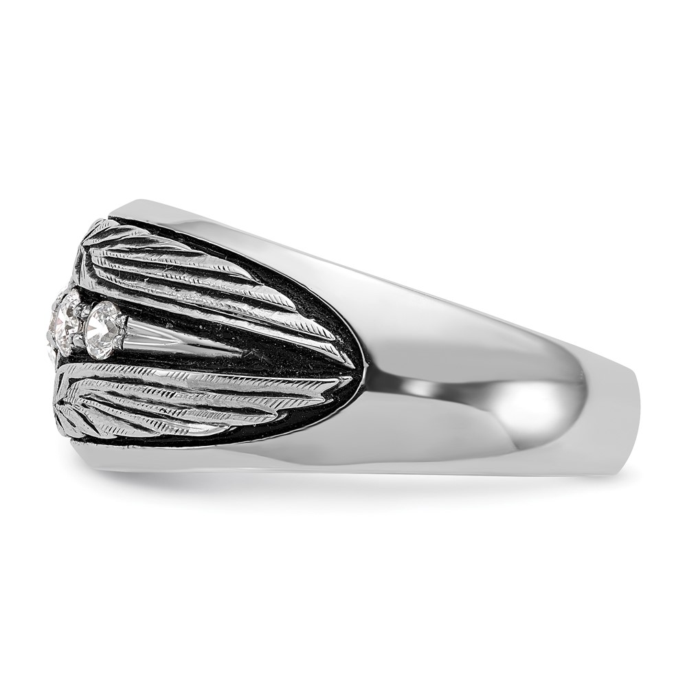 IBGoodman 14k White Gold with Black Rhodium Men’s Polished and Textured 5-Stone 1/2 Carat AA Quality Diamond Ring