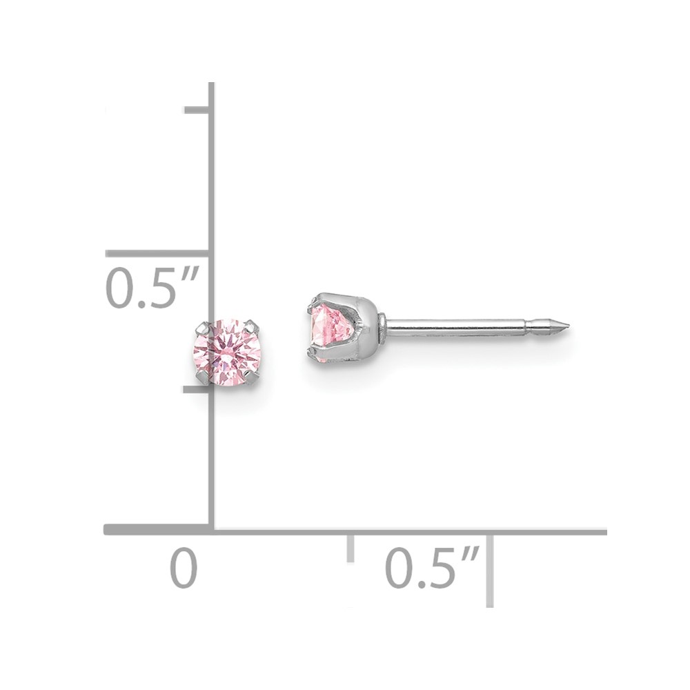 Inverness 14k White Gold 3mm Pink CZ Stud Short Post Piercing Earrings