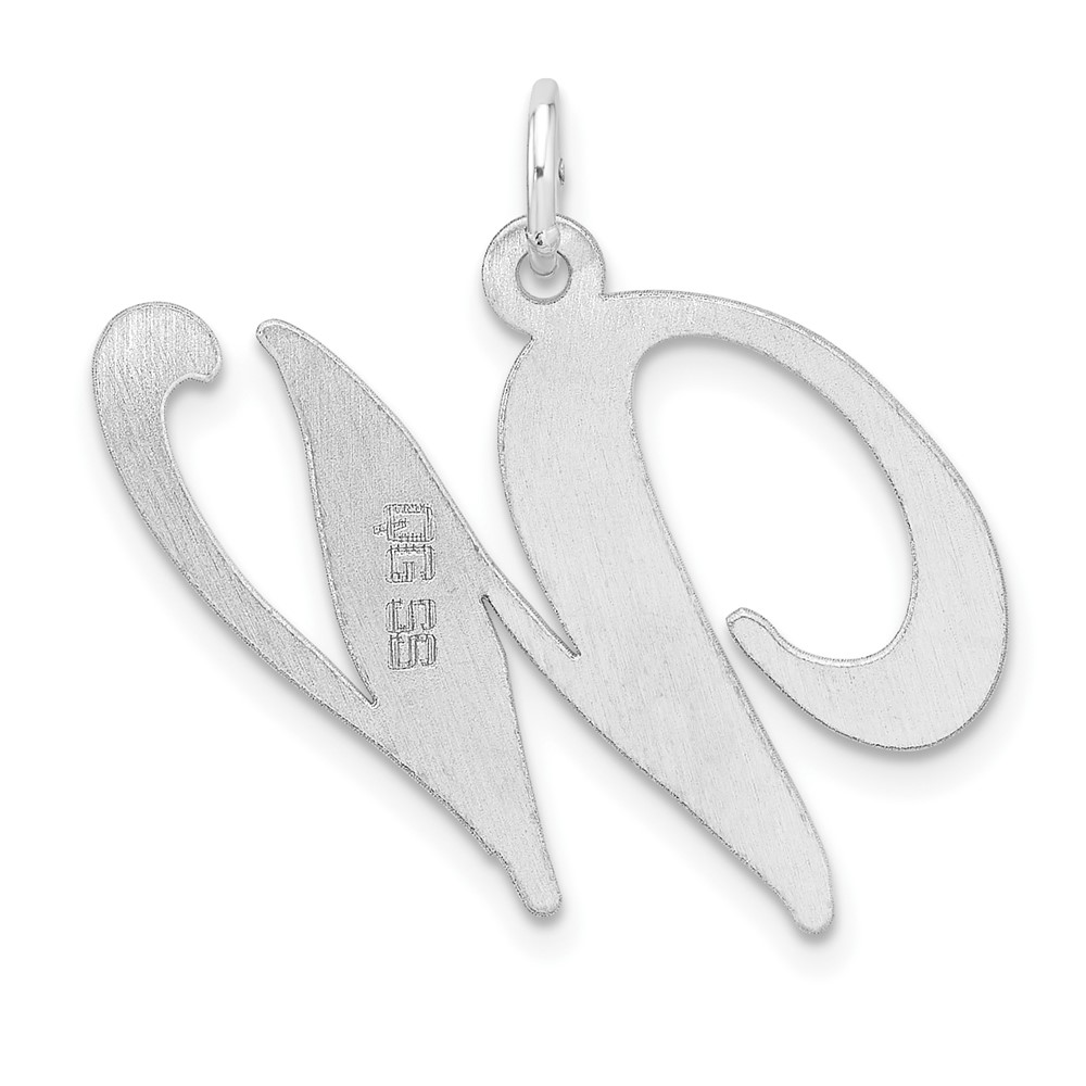 Large Sterling Silver Rhodium-plated Fancy Script Letter W Initial Charm