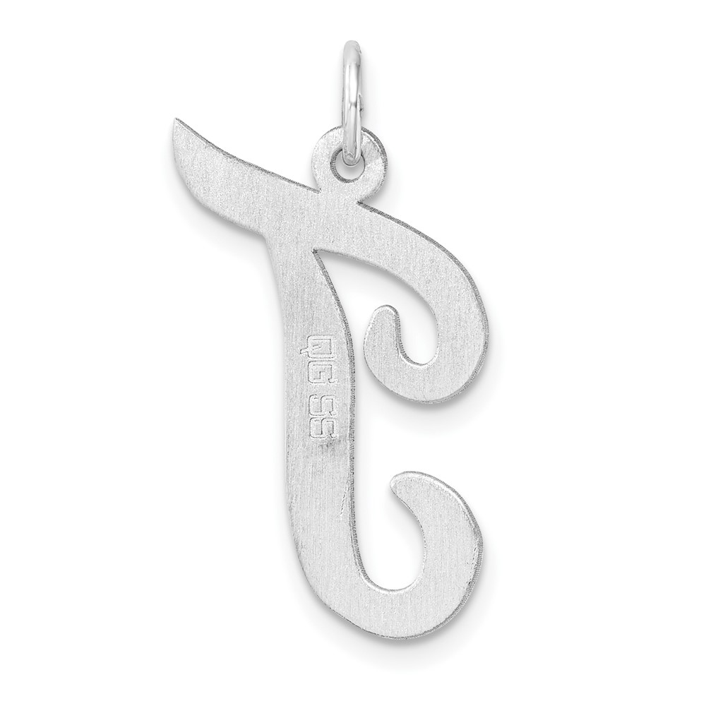Large Sterling Silver Rhodium-plated Script Letter T Initial Charm