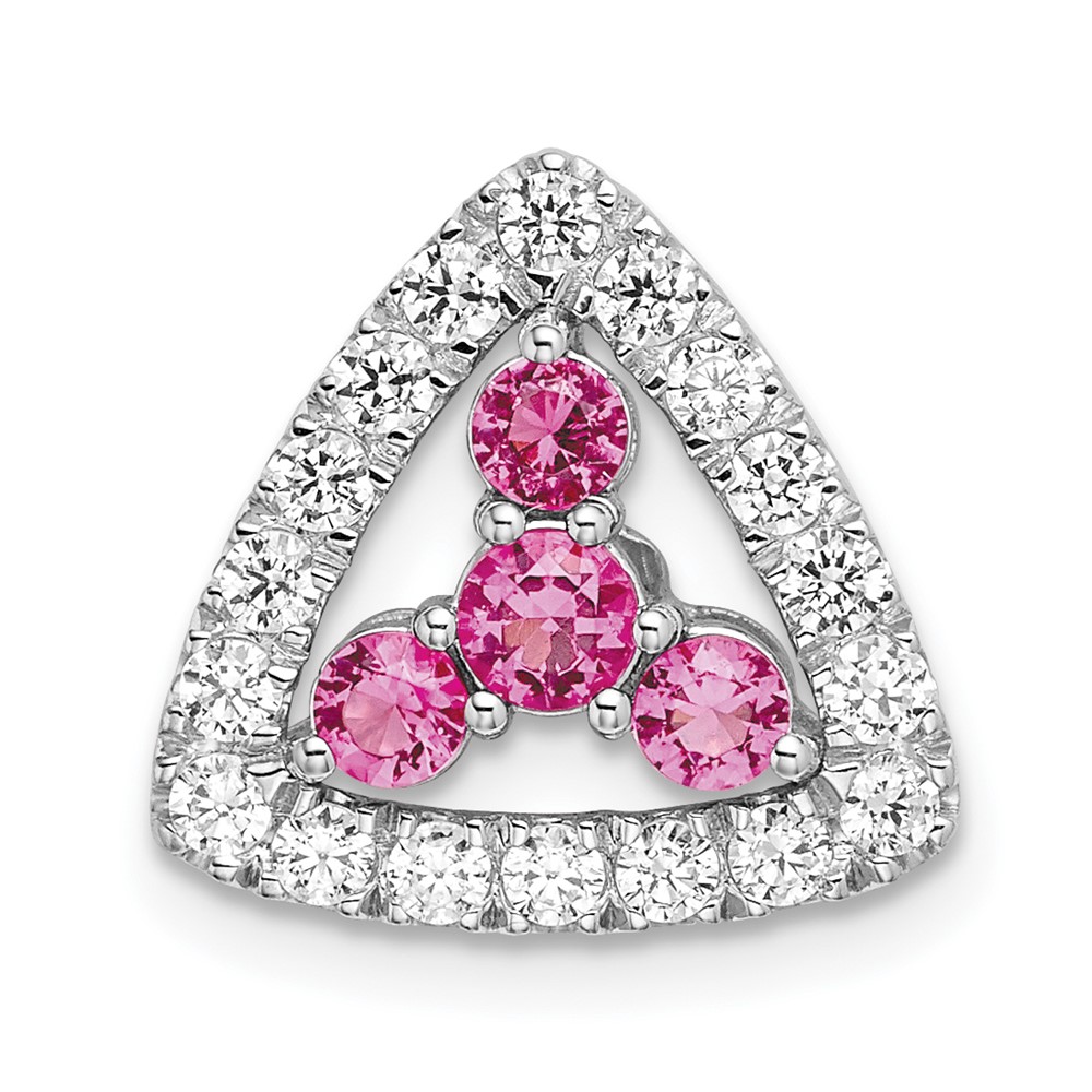 Pure Serenity 14k White Gold 3/8 carat Lab Grown Diamond VS/SI+ G+ and Lab Created Pink Sapphire Triangle Pendant