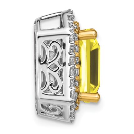 Sterling Silver Antique Cushion Citrine and Diamond Pendant