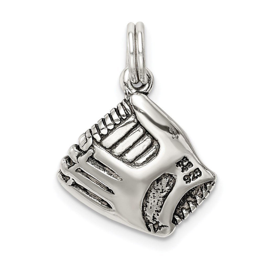Sterling Silver Antiqued Baseball Glove w/Simulated Pearl Charm